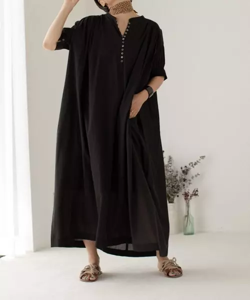 インド綿バンドカラーシアーワンピース079 70 Zozotown Shopping Service Lighted Hk
